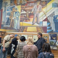 Далее участники тура посетили кузнечно-штамповочный цех, где расположен самый большой пресс усилием 75 000 тонн, цех предчистовой механической обработки деталей и музейно-выставочный центр ВСМПО. Для полной картины экскурсия сопровождалась пешей прогулкой по парку им. В.В. Тетюхина, где расположена скульптура Владислава Валентиновича. Экскурсанты из Нижнего Тагила хорошо знакомы с именем ученого и бывшего директора корпорации, который увековечил себя открытием Уральского клинического лечебно-реабилитационного центра.